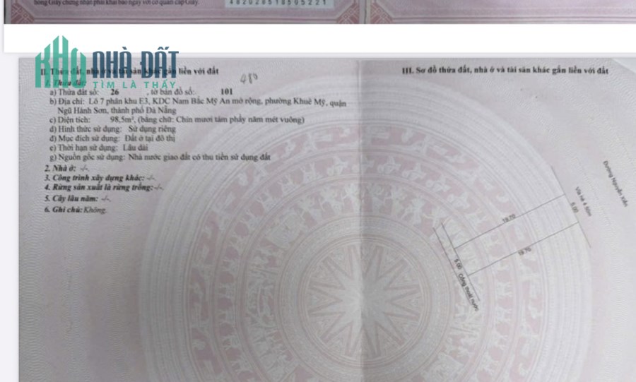Với địa thế tốt gần Biển Sơn Thủy,Bệnh Viện 600 giường,Khu Tâm Linh Ngũ Hành Sơn, Núi Non Nước. Rất tiện cho việc xây dựng Biệt Thự, nhà hàng,khách sạn.v,v..Sổ đỏ không vay Ngân Hàng hay cầm cố. Đầy đủ pháp lý,luôn tạo niền tin và an tâm cho người mua. Khách có nhu cầu liên hệ Anh Minh, Công Ty Bất Động Sản Hai Minh Long,Lô 86 Đường Nguyễn Khắc Viện, Phường Ngũ Hành Sơn,Đà Nẵng. Chúng Tôi luôn đồng hành cùng khách hàng trong các khâu tư vấn giá mua bán,địa thế sản phẩm và tiềm năng sinh lời, Nhận Bán giúp Nhà, Đất cho những khách hàng ở xa, Hỗ trợ vay 3 bên, Vay Ngân Hàng lãi suất tốt..Đảm bảo vay trên 70% giá trị tài sản cần thế chấp.Nhận đo đạc, tách thửa, nhập thửa, lên đất ở, đất cây lâu năm,gia hạn đất màu, đất trồng cây lâu năm, nhận thiết kế nhà,xin giấy phép xây dựng. Lh:0934.808.768