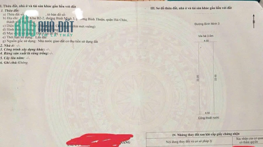 135m2/30 tỷ.Đất 2 M tiền, đường Bình Minh 6,sát cầu Rồng, Cầu Sông Hàn.
