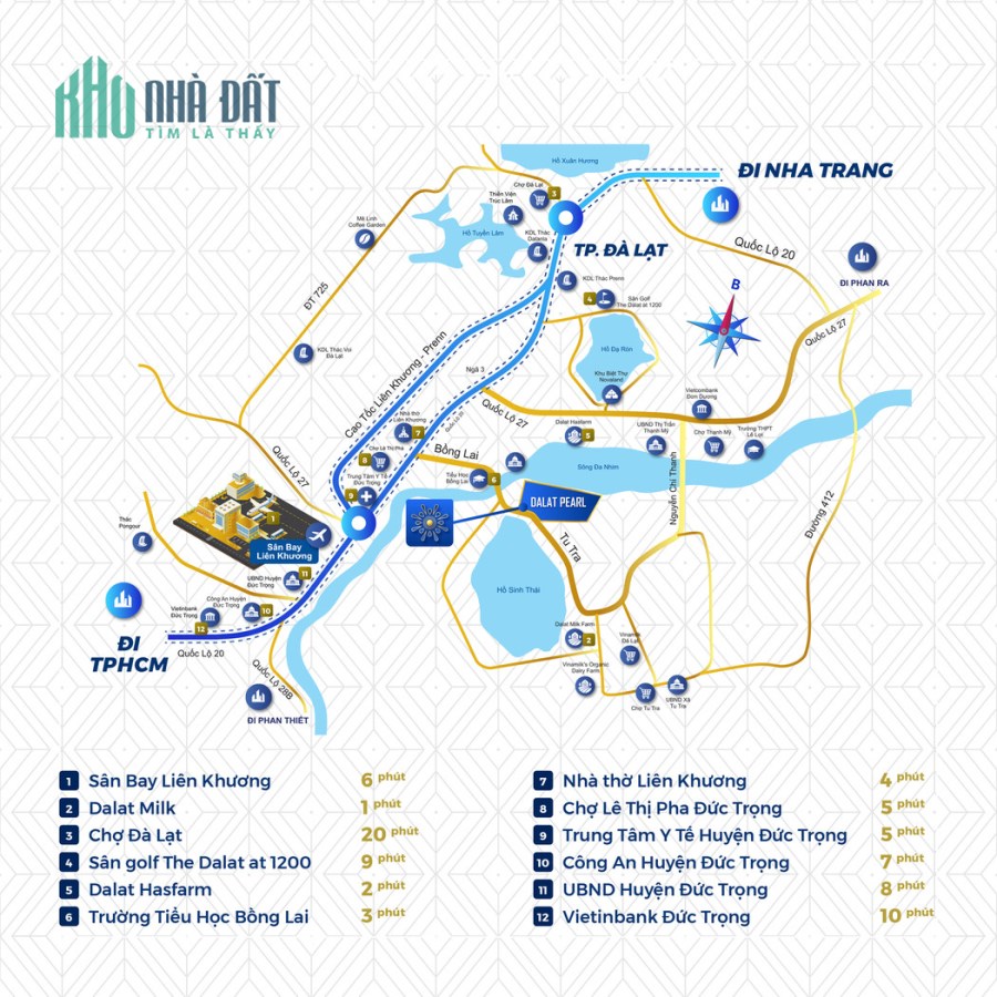 Vị trí đắc địa khi chỉ cách sân bay 5 phút và chợ Đà Lạt 20 phút.