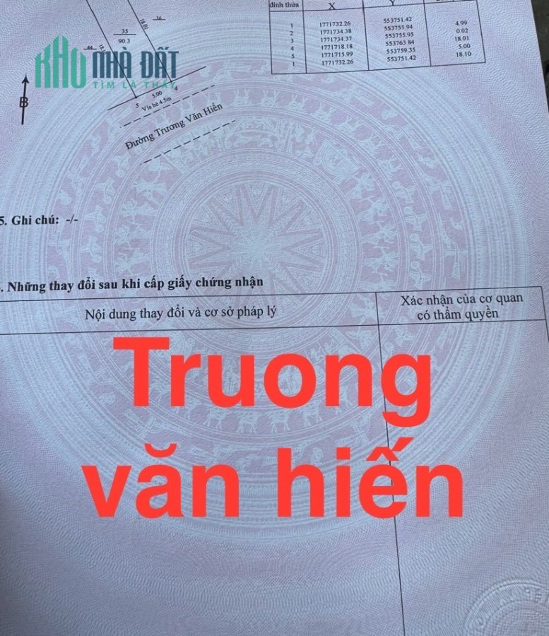 Bán 2 lô liền kề,Đất đường Trương Văn Hiến, Phường Khuê Mỹ, Ngũ Hành Sơn, Đà Nẵng .Đường rộng 7,5m,lề 4,5m.Diện tích 10x18=180m²,Hướng: Nam.Gi á: 18 tỷ