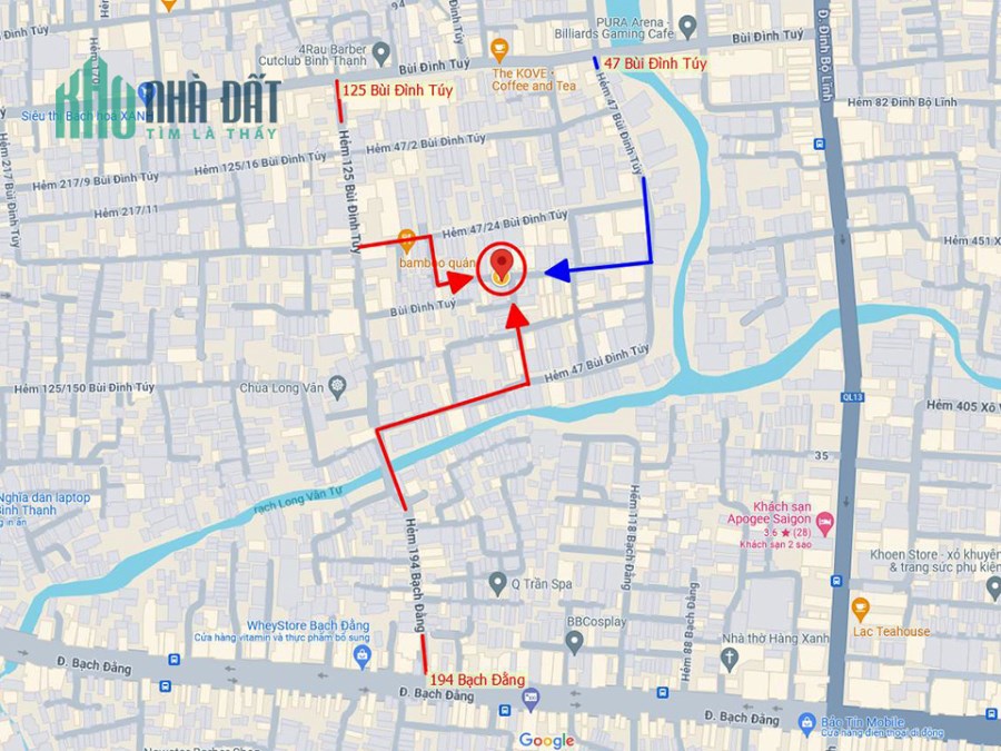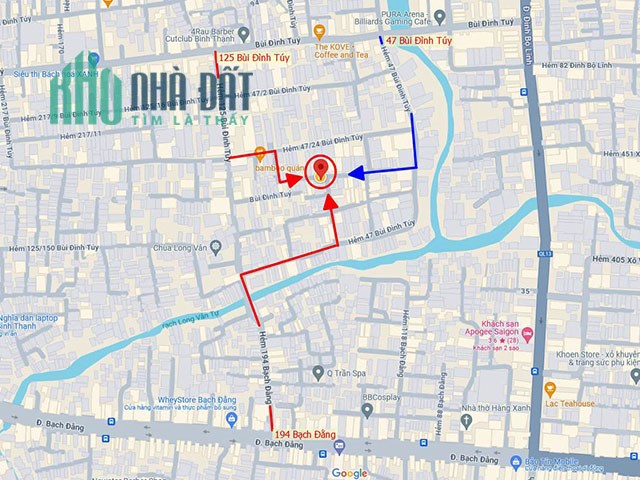 - Vị trí: 47/42/22D Bùi Đình Túy, P.24, Q.Bình Thạnh. Có 3 đường ô tô vào: hẻm 47 và hẻm 125 Bùi Đình Túy, hẻm 194 Bạch Đằng (hẻm chùa Long Vân Tự).